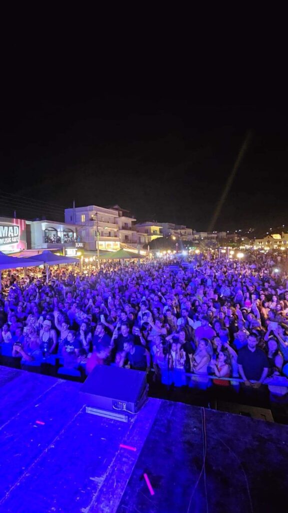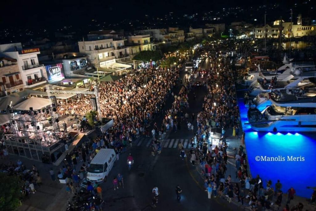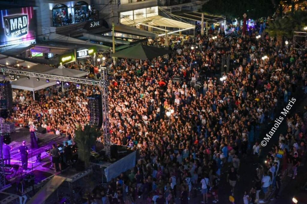 Το αδιαχώρητο δημιουργήθηκε όχι μόνο γύρω από την εξέδρα, αλλά και σε όλη την κεντρική πλατεία Καλύμνου και στα απέναντι πεζοδρόμια. Επίσης ασφυκτικά γεμάτα και όλα τα καταστήματα εστίασης της κεντρικής πλατείας.