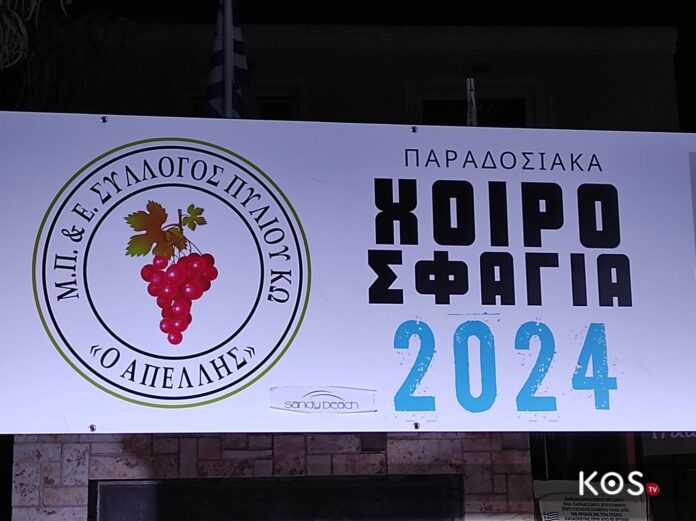 Τα παραδοσιακά χοιροσφάγια είναι ένα έθιμο που κρατά για δεκαετίες στο νησί μας και αναβιώνει κάθε χρόνο από το σύλλογο ” Απελλής” Πυλίου.Έτσι και φέτος με τη συμμετοχή αρκετού κόσμου, τα παραδοσιακά χοιροσφάγια, πραγματοποιήθηκαν το Σάββατο 5 Οκτωβρίου, στην Πλατεία Αγίου Νικολάου στο Πυλί σε διοργάνωση του Μορφωτικού Πολιτιστικού Εξωραϊστικού Συλλόγου Πυλίου «Ο Απελλής» και της Κοινότητας Πυλίου στο πλαίσιο των Θερινών Ιπποκρατείων 2024.Την εκδήλωση χαιρέτησαν το μέλος του ΑΠΕΛΛΗ Μηνάς Κιάρης, ο Πρόεδρος του Συλλόγου Χριστόδουλος Τσαμπουνιάρης ενώ σύντομο χαιρετισμό έκαναν επίσης η Έπαρχος Κω-Νισύρου Ντίνα Σβύνου και ο Δήμαρχος Κω Θεοδόσης Νικηταράς.Παράλληλα τιμητική πλακέτα απονεμήθηκε στους αναβιωτές του εθίμου Αλέξη Σαμαρά, Βασιλική Σαμαρά, Ειρήνη Νικολένδρη και Πρεσβυτέρα Διονυσία Τογρού του Σταμάτιου.Ακολούθησαν παραδοσιακοί χοροί από το χορευτικό τμήμα του ΑΠΕΛΛΗ.