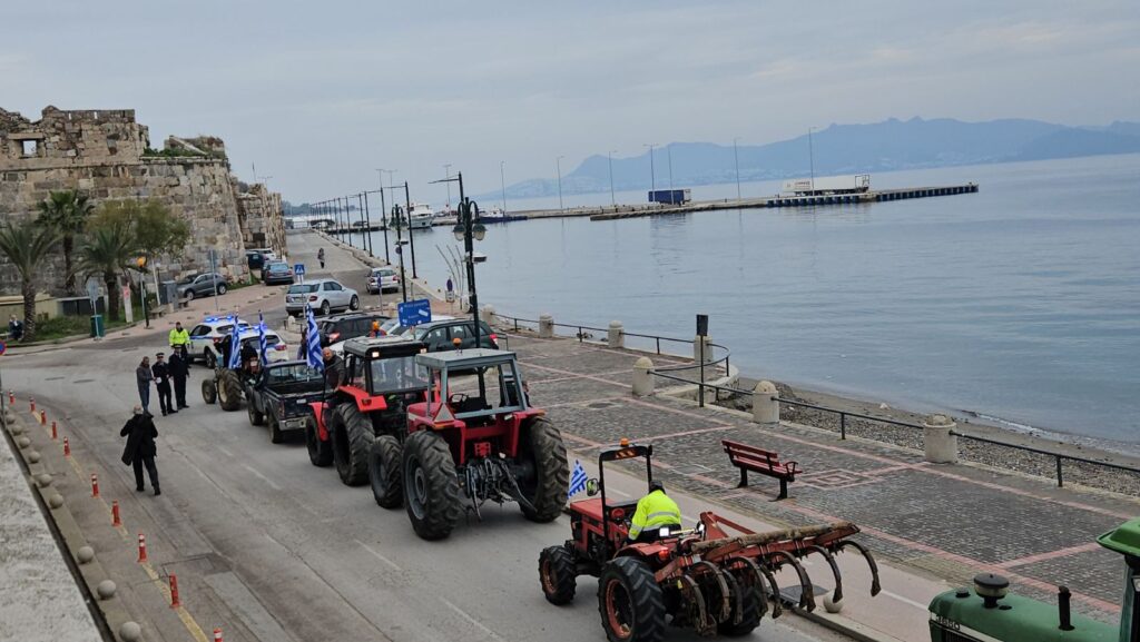 Αγρότες και κτηνοτρόφοι της Κω πραγματοποίησαν πορεία διαμαρτυρίας με τρακτέρ προς το Επαρχείο και το Δημαρχείο, διεκδικώντας λύσεις για τα διαρκώς αυξανόμενα προβλήματα του κλάδου τους. Βασικά αιτήματά τους είναι η μείωση του κόστους παραγωγής, που πλήττεται από τις αυξημένες τιμές σε καύσιμα, ζωοτροφές και λιπάσματα, καθώς και η προστασία των καλλιεργήσιμων εκτάσεων, οι οποίες μειώνονται λόγω της μαζικής τουριστικής ανάπτυξης. Ζητούν κρατική μέριμνα και τη θέσπιση ζωνών αγροτικής και κτηνοτροφικής δραστηριότητας, προκειμένου να διασφαλιστεί η επιβίωση του επαγγέλματός τους.