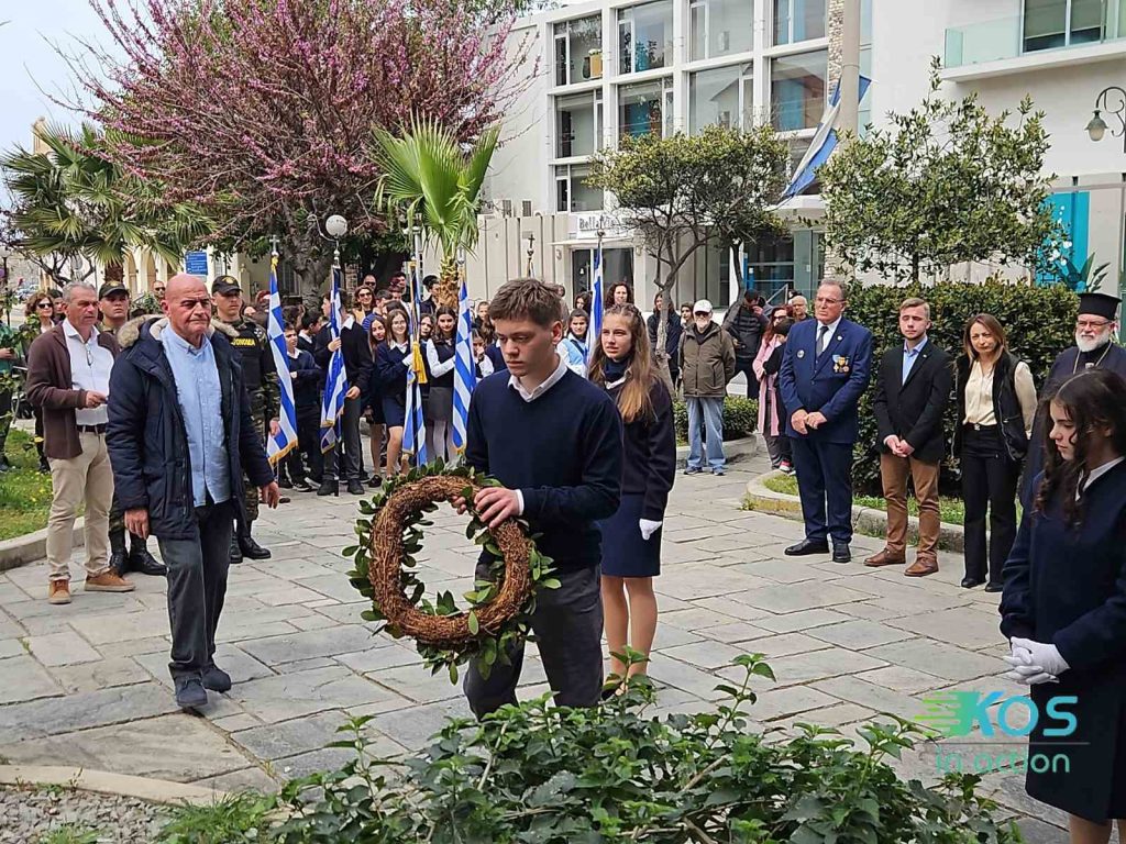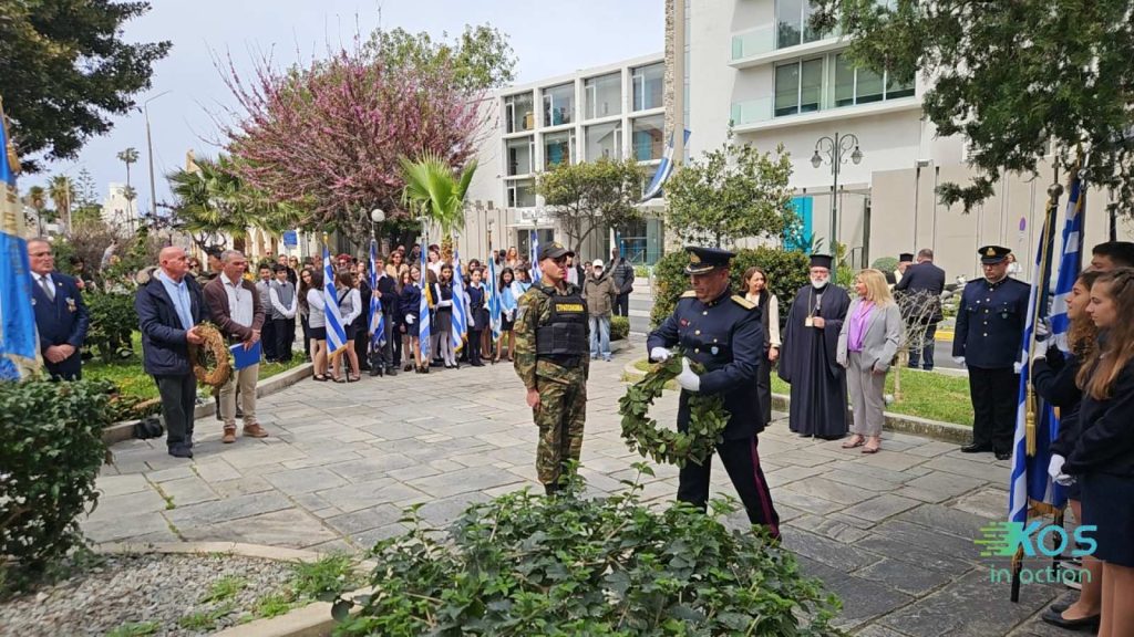 Επιμνημόσυνη δέηση και κατάθεση στεφάνων πραγματοποιήθηκε σήμερα στο πλαίσιο των εορταστικών εκδηλώσεων για την εθνική επέτειο της 25ης Μαρτίου 1821, στα τρία μνημεία της Κω.