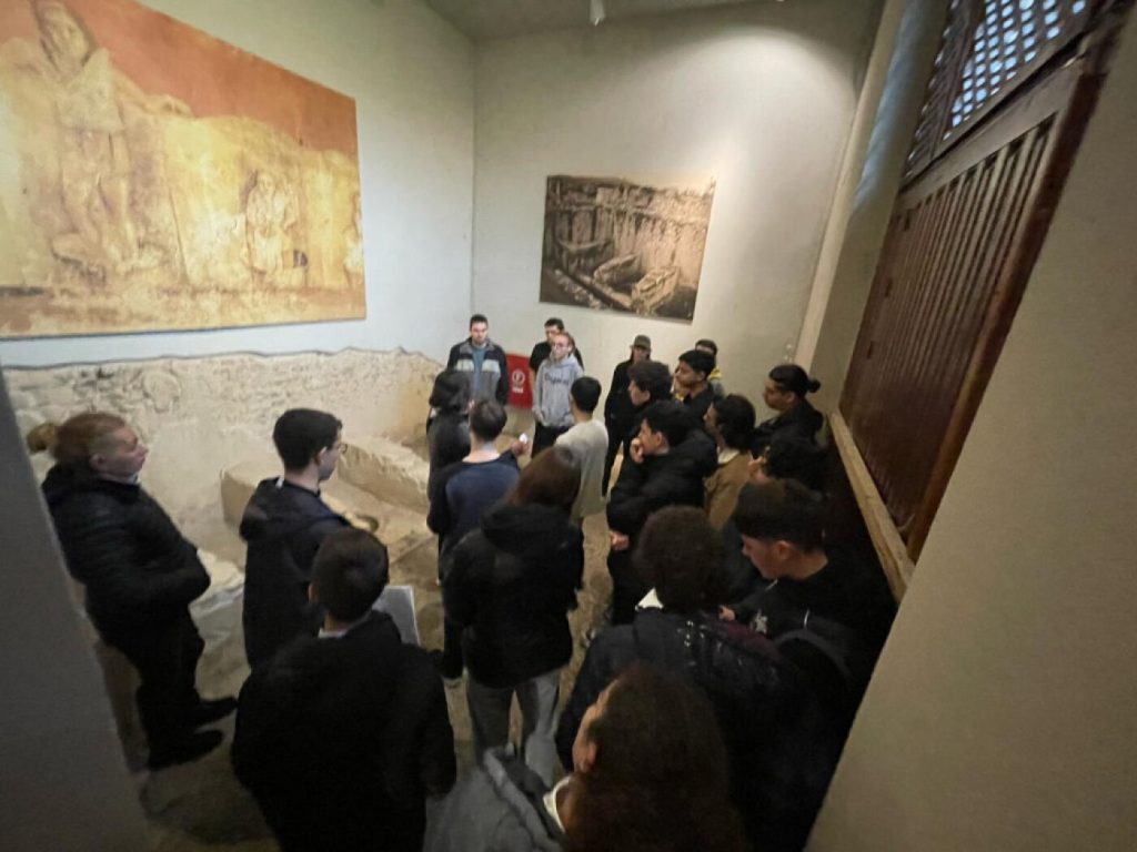 Στη συνέχεια, η ομάδα επισκέφθηκε το Αρχαιολογικό Μουσείο και την Casa Romana, όπου μαθητές από το σχολείο της Αντιμάχειας – Ασκληπιείου Δράσεις – ανέλαβαν την ξενάγηση.Η επίσκεψη αυτή ενίσχυσε τους δεσμούς μεταξύ των δύο σχολείων και προσέφερε μια μοναδική εμπειρία στους μαθητές και των δύο χωρών.