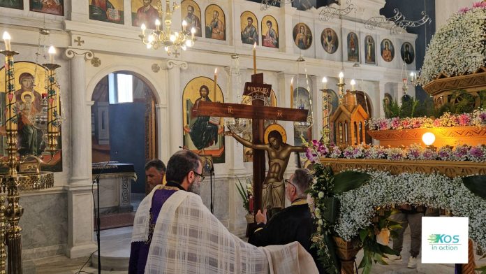 Με ιδιαίτερη ευλάβεια και συγκίνηση τελέστηκε το απόγευμα της Μεγάλης Παρασκευής η ακολουθία της Αποκαθήλωσης στον Ιερό Ναό Αγίου Νικολάου στην Κω.
