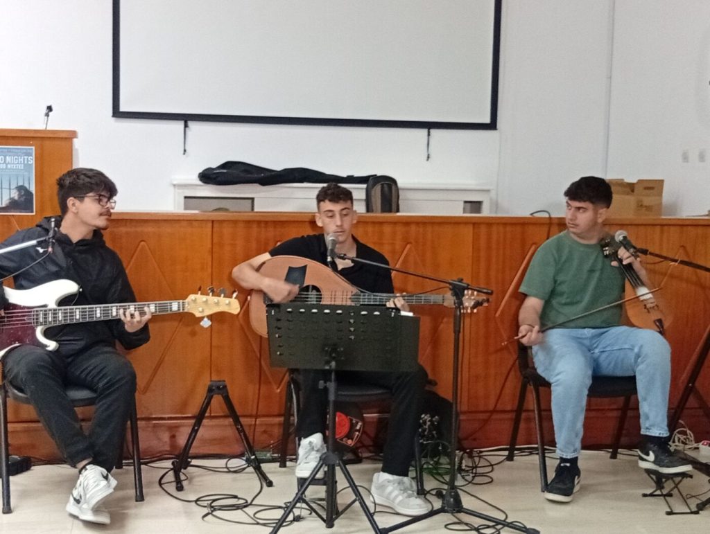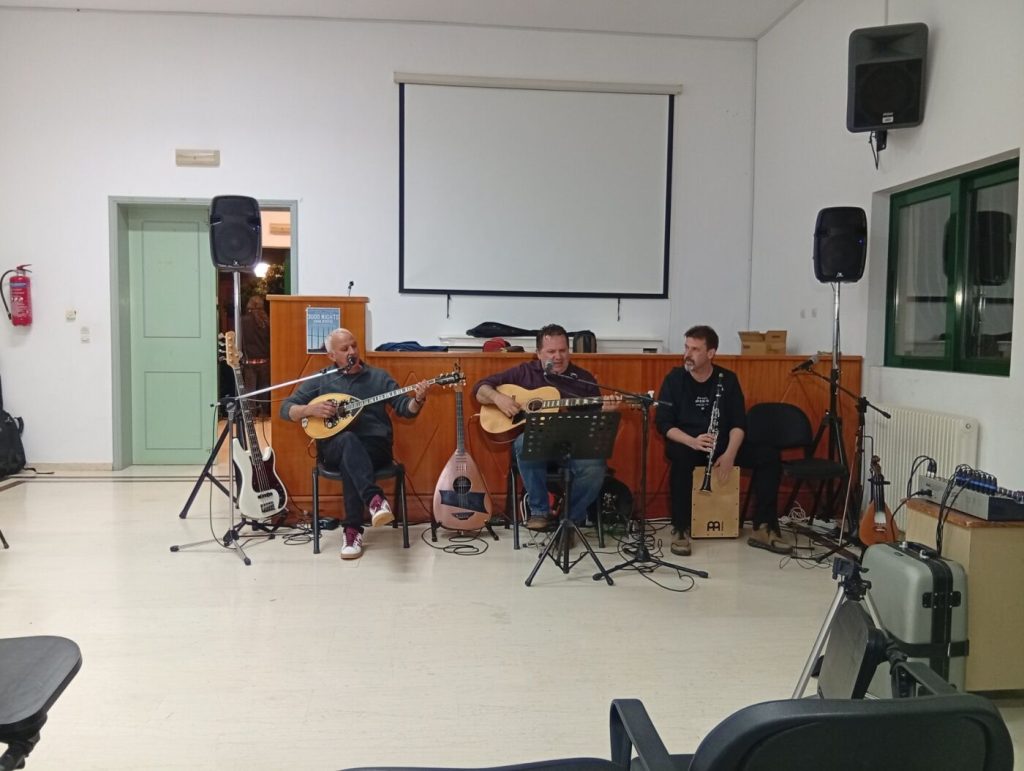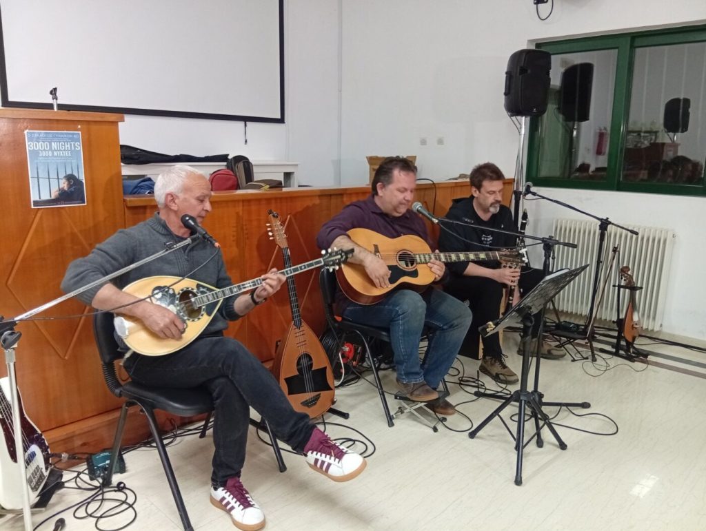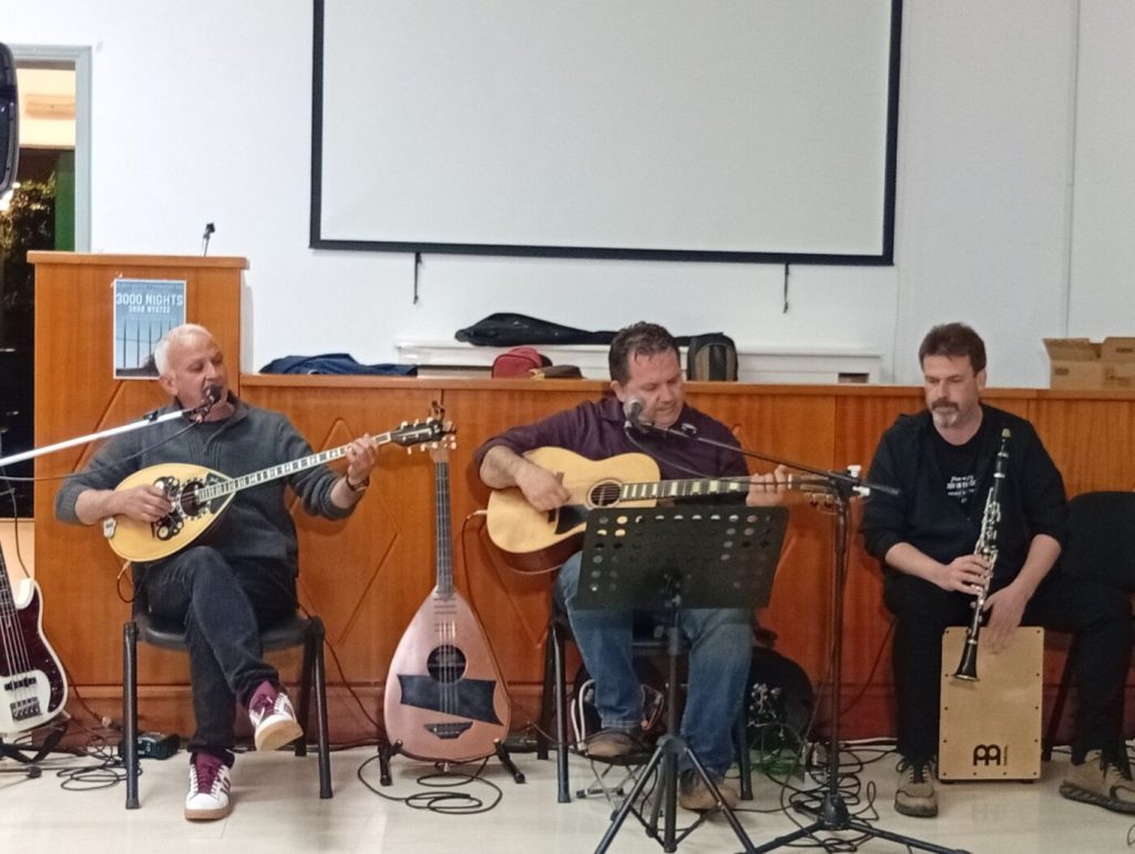 Η αίθουσα γέμισε με τραγούδια και συνθήματα, καθώς τρία μουσικά σχήματα ένωσαν τις φωνές τους με το κοινό, δημιουργώντας μια ζεστή και δυναμική ατμόσφαιρα. Η μουσική αποτέλεσε το όχημα για να τιμηθούν οι ιστορικοί αγώνες των εργατών, αλλά και για να εκφραστεί η έμπρακτη αλληλεγγύη στους διωκόμενους απεργούς εκπαιδευτικούς, οι οποίοι συνεχίζουν να δίνουν τη δική τους μάχη για ένα καλύτερο δημόσιο σχολείο.