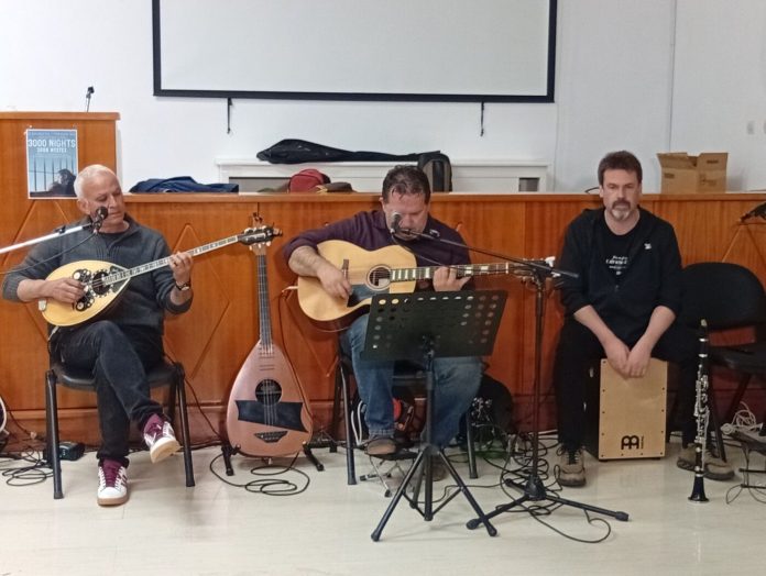 Η αίθουσα γέμισε με τραγούδια και συνθήματα, καθώς τρία μουσικά σχήματα ένωσαν τις φωνές τους με το κοινό, δημιουργώντας μια ζεστή και δυναμική ατμόσφαιρα. Η μουσική αποτέλεσε το όχημα για να τιμηθούν οι ιστορικοί αγώνες των εργατών, αλλά και για να εκφραστεί η έμπρακτη αλληλεγγύη στους διωκόμενους απεργούς εκπαιδευτικούς, οι οποίοι συνεχίζουν να δίνουν τη δική τους μάχη για ένα καλύτερο δημόσιο σχολείο.