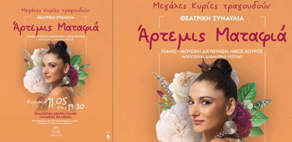 Στην εκπομπή ΜΑΖΙ στο KosTv μίλησε η ερμηνεύτρια Άρτεμις Ματαφιά με αφορμή την θεατρική συναυλία στην Κω την Κυριακή 11 Μαΐου και ώρα 19:30, στο Πολιτιστικό Κέντρο Πυλίου σε συνεργασία με τον Πολιτιστικό Σύλλογο Γυναικών Πυλίου “Η Αναξίκλεια”Η Άρτεμις Ματαφιά γεννήθηκε στην Αθήνα. Έκανε σπουδές μουσικής, μουσικής-μονωδίας στο Δημοτικό ωδείο Πρέβεζας και στην Αθήνα, στο Δημοτικό ωδείο Ζωγράφου και στο Εθνικό Ωδείο, μελετώντας παράλληλα κλασική κιθάρα και τζαζ τραγούδι.