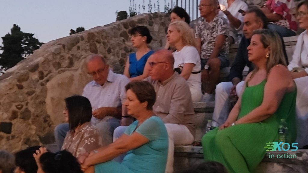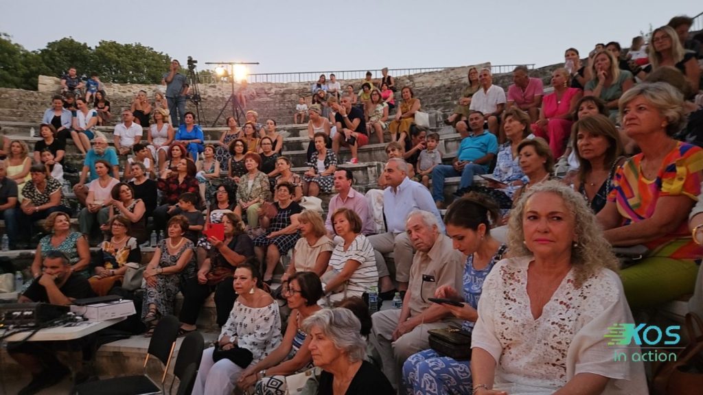 Το κοινό —κάτοικοι, επισκέπτες και φιλότεχνοι— παρακολουθεί με σεβασμό και κατάνυξη. Καθώς η νύχτα πέφτει πάνω από το αρχαίο θέατρο, κάθε λέξη και κάθε νότα αντηχεί στις πέτρες του Ωδείου, φωτίζοντας τη διαχρονικότητα της ανθρώπινης έκφρασης.