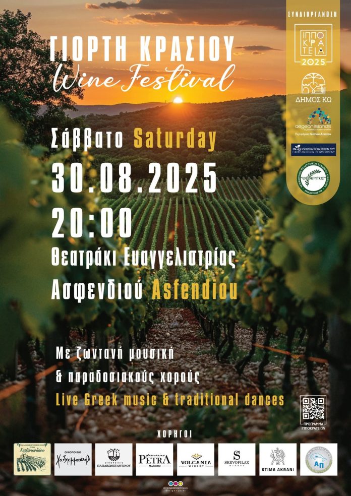 Με χαρά και τιμή σας προσκαλούμε στην φετινή Γιορτή Κρασιού που θα πραγματοποιηθεί στο θεατράκι Ευαγγελιστρίας Ασφενδιού, το Σάββατο 30.08.2025 στις 20:00.