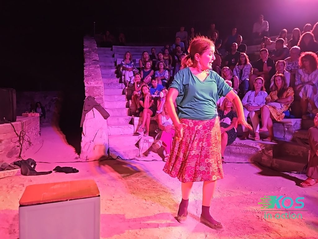 Το Ρωμαϊκό Ωδείο Κω πλημμύρισε σήμερα το βράδυ από φωνές, συναισθήματα και εικόνες μέσα από τη θεατρική παράσταση «Αφηγήτρια ταινιών» με την ξεχωριστή Κάτια Γέρου.