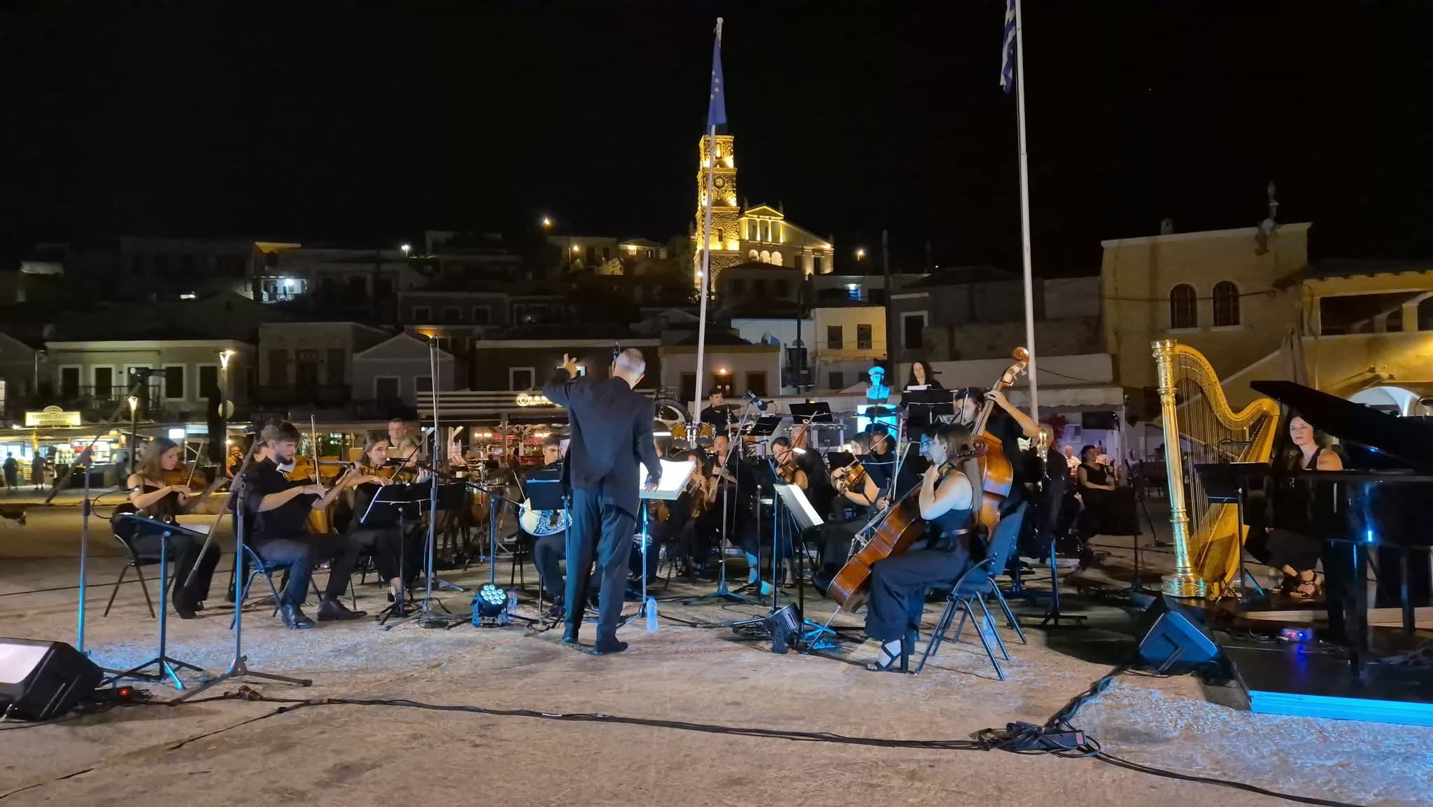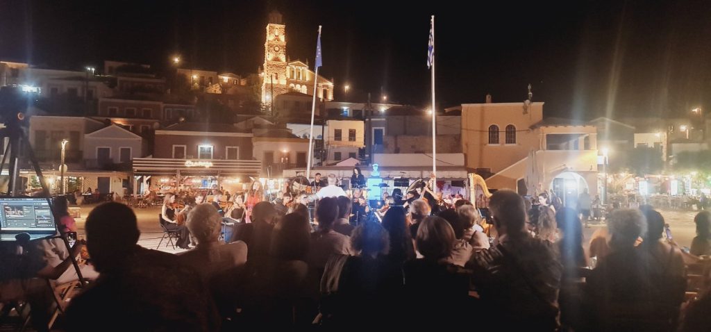 Η Κρατική Ορχήστρα Αθηνών, σε συνεργασία με μέλη της συμφωνικής ορχήστρας νέων Camerata Junior του Συλλόγου Φίλων Μουσικής, επέστρεψε στο νησί και χάρισε στο κοινό μια μοναδική συναυλία – αφιέρωμα στον Μίκη Θεοδωράκη, με αφορμή τη συμπλήρωση 100 χρόνων από τη γέννησή του.