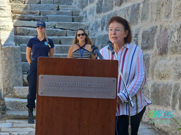 Κατά τον χαιρετισμό της, η κ. Μενδώνη εξέφρασε την ευγνωμοσύνη της προς τον Περιφερειάρχη Νοτίου Αιγαίου, Γιώργο Χατζημάρκο, υπογραμμίζοντας τη «σταθερή και καθημερινή συνεργασία» που έχουν αναπτύξει τα τελευταία χρόνια.