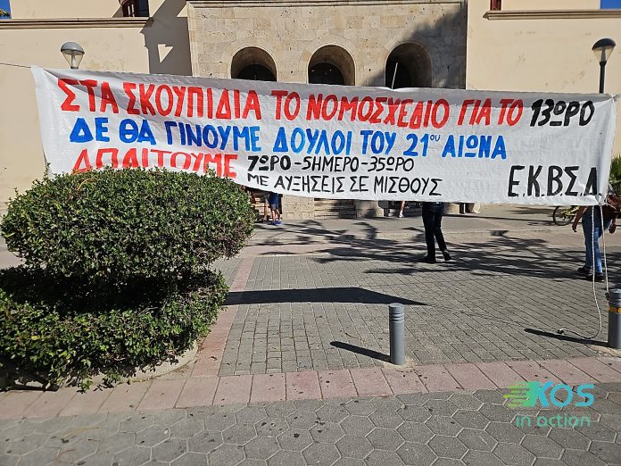 Απεργιακή συγκέντρωση στην πλατεία Ελευθερίας πραγματοποιήθηκε σήμερα το πρωί, στο πλαίσιο της πανελλαδικής κινητοποίησης ενάντια στο νέο εργασιακό νομοσχέδιο.