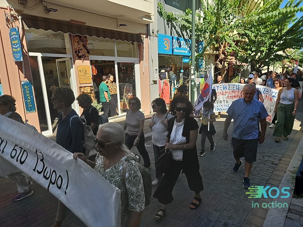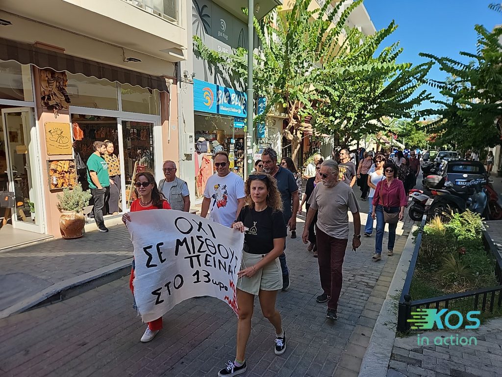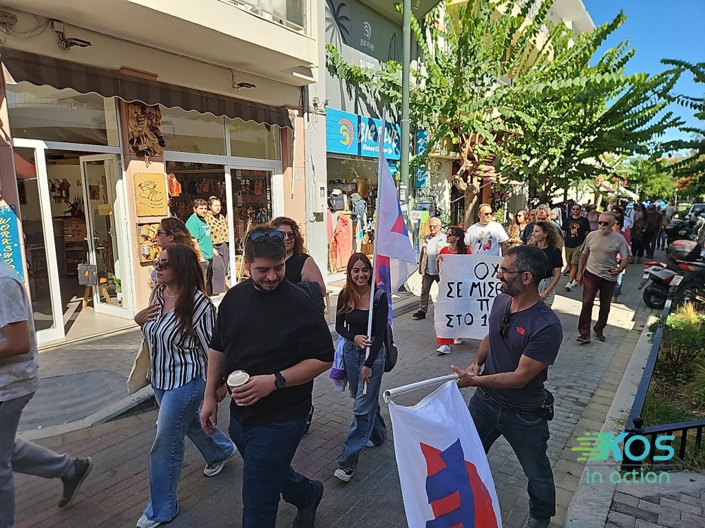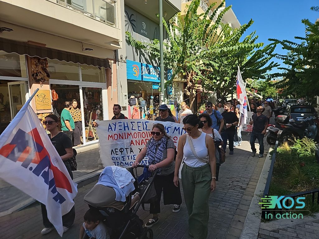 Μετά τη συγκέντρωση ακολούθησε πορεία σε κεντρικούς δρόμους της πόλης, με συνθήματα και πανό.