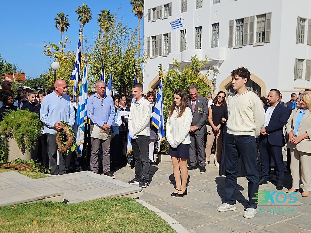 Μετά το πέρας των εκδηλώσεων, όπως ορίζει η παράδοση, μαθητές μαζί με εκπροσώπους των Αρχών και των Φορέων κατέθεσαν στεφάνια στα μνημεία της Κω, όπου τελέστηκε και επιμνημόσυνη δέηση στη μνήμη των πεσόντων.