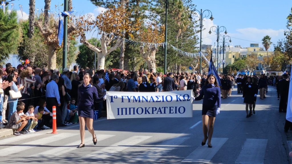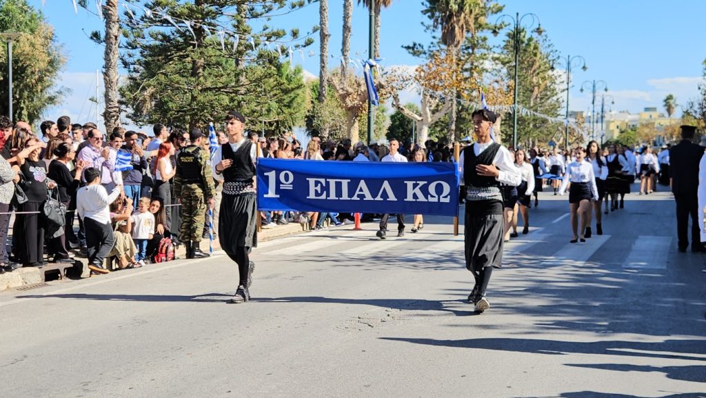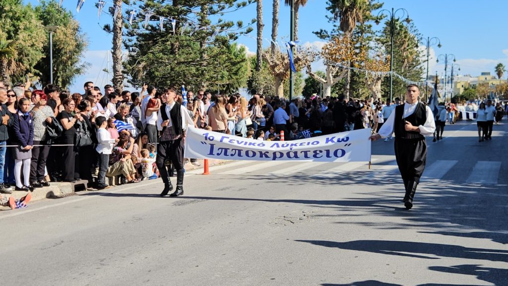 Την καρδιά της παρέλασης αποτέλεσαν οι μαθητές της Δευτεροβάθμιας και Πρωτοβάθμιας Εκπαίδευσης της πόλης, που παρήλασαν με σεμνότητα και καμάρι, αποσπώντας το πιο θερμό χειροκρότημα του πλήθους. Η παρέλαση του πολιτικού τμήματος ολοκληρώθηκε με τη Φιλαρμονική του Δήμου Κω.