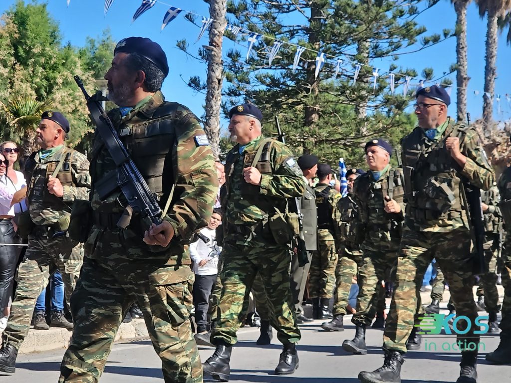 Ιδιαίτερη παρουσία είχαν τα μέλη του πεζοπόρου τμήματος της Πολιτικής Προστασίας του Δήμου Κω, καθώς και οι πολιτιστικοί σύλλογοι του νησιού — Σύλλογος Στερεοελλαδιτών, Σύλλογος Ποντίων και Σύλλογος Κρητών — οι οποίοι με τις παραδοσιακές τους στολές μετέφεραν χρώμα και παράδοση στην παρέλαση.