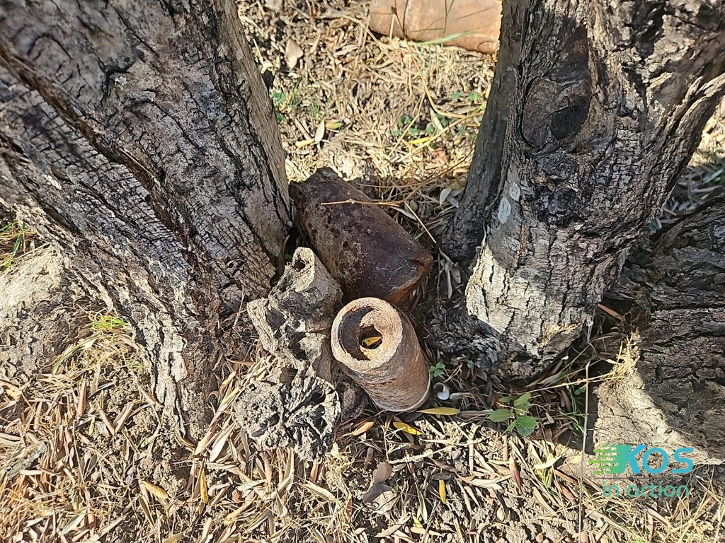 Κατά τη διάρκεια περιπολίας στην ευρύτερη περιοχή του Ασκληπιείου, ο φύλακας της αρχαιολογίας Κώστας Κωστογλάλης εντόπισε μέσα σε χωράφι ένα μη διαρρηγμένο βλήμα.