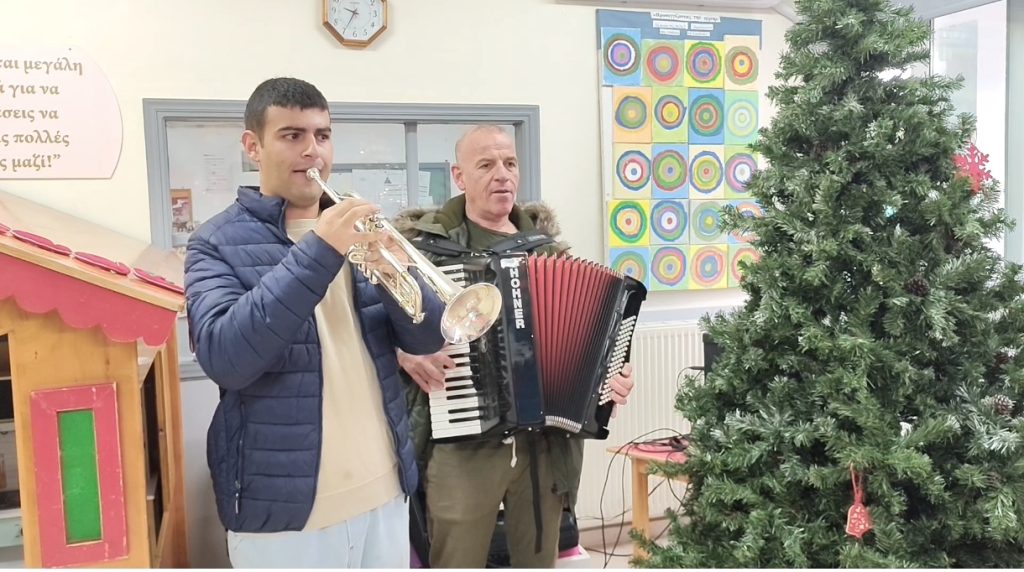 Την όμορφη εκδήλωση πλαισίωσαν με χριστουγεννιάτικες μελωδίες ο μαέστρος της φιλαρμονικής Δήμου Κω Νίκος Γκαναβούρας και το μέλος Βασίλης Δάτσιος.