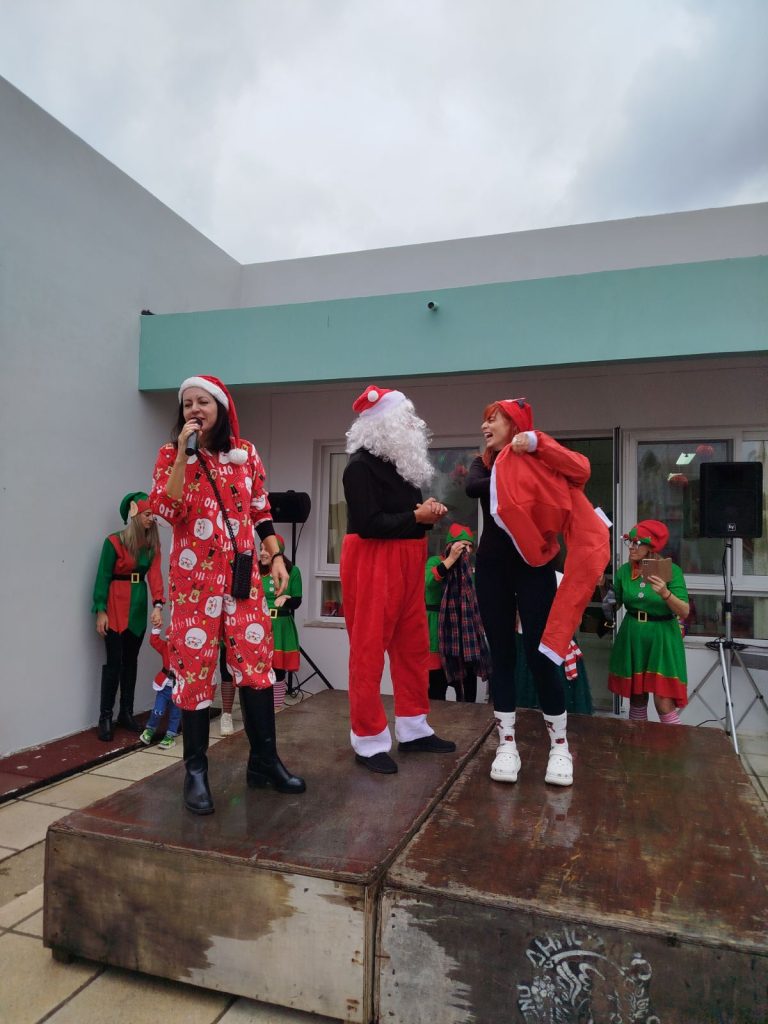 Οι εκπλήξεις δεν έλειψαν, καθώς στον σταθμό έκαναν την εμφάνισή τους ο Άγιος Βασίλης μαζί με την Αγιοβασιλίνα, σκορπίζοντας χαμόγελα και ενθουσιασμό στα παιδιά. Μάλιστα, οι δύο αγαπημένοι χριστουγεννιάτικοι ήρωες… χρειάστηκαν τη βοήθεια των παιδιών, αφού είχαν «χάσει» τα ρούχα τους! Οι μικροί μαθητές ανέλαβαν δράση και, μέσα από ένα διασκεδαστικό παιχνίδι, έντυσαν τον Άγιο Βασίλη και την Αγιοβασιλίνα, βάζοντας τη δική τους δημιουργική πινελιά.