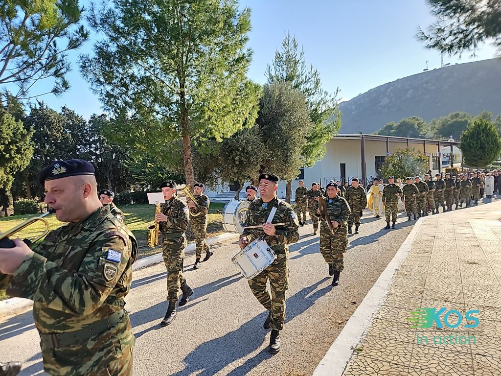 Το πρωί τελέστηκε πανηγυρική Θεία Λειτουργία, χοροστατούντος του Σεβασμιοτάτου Μητροπολίτου Κώου και Νισύρου κ.κ. Ναθαναήλ, παρουσία στρατιωτικών αρχών, στελεχών των Ενόπλων Δυνάμεων, καθώς και πλήθους πιστών. Ακολούθησε λιτάνευση της ιεράς εικόνας του Αγίου εντός του στρατοπέδου, σε κλίμα σεβασμού και ευλάβειας.