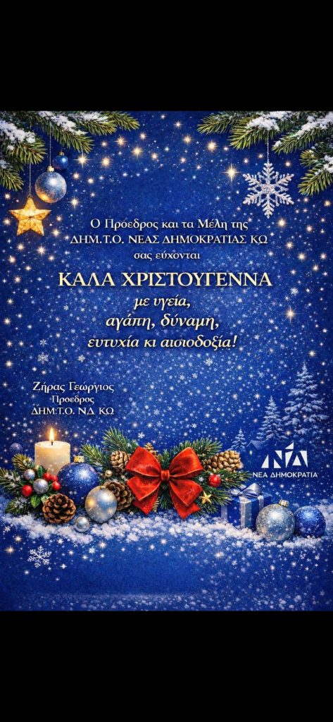 ΑρχικήΚοινωνικάΔΗΜ.ΤΟ. Νέας Δημοκρατίας Κω: Ευχές για τις γιορτές Κοινωνικά ΔΗΜ.ΤΟ. Νέας Δημοκρατίας Κω: Ευχές για τις γιορτές 26 Δεκεμβρίου 2025 By Kosinaction Newsroom 0 μερίδιο FacebookTwitterPinterestWhatsApp Τις ςευχές της για τις φετινές γιορτές στέλνει η ΔΗΜΤΟ ΝΔ Κω. Tagsευχές της ΔΗΜΤΟ ΝΔ Κω Προηγούμενο άρθροΕυχές ΓΣ. ΗΠΙΟΝΗ ΚΩΕπόμενο άρθροΥψηλό επίπεδο και διεθνείς εμπειρίες για τον Ηπιόνη Κω στο Christmas Cyprus Cup Kosinaction Newsroom ΣΧΕΤΙΚΑ ΑΡΘΡΑ Κοινωνικά Όταν ο πόνος γίνεται θέαμα: η ηθική κατάρρευση της ενημέρωσης 29 Ιανουαρίου 2026 Κοινωνικά Άδεια για νέο ξενοδοχείο, σε μία Κω που ήδη «ασφυκτιά»… 28 Ιανουαρίου 2026 Κοινωνικά Πρώτη συνεδρίαση Ομάδας Εργασίας για το ΤΠΣ 28 Ιανουαρίου 2026 ΑΦΗΣΤΕ ΜΙΑ ΑΠΑΝΤΗΣΗ Ακύρωση απάντησης Σχόλιο: εισάγετε το σχόλιό σας! Όνομα: παρακαλώ εισάγετε το όνομά σας εδώ Email: έχετε εισάγει εσφαλμένη διεύθυνση ηλεκτρονικού ταχυδρομείου! παρακαλώ εισάγετε εδώ την ηλεκτρονική σας διεύθυνση Ιστοσελίδα: αποθηκεύστε το όνομα, το ηλεκτρονικό ταχυδρομείο και τον ιστότοπό μου σε αυτό το πρόγραμμα περιήγησης για την επόμενη φορά που θα σχολιάσω. ΔΗΜΟΦΙΛΗ Ολοκληρώθηκε η συνεδρίαση του Δημοτικού Συμβουλίου Κω – Πολιτική Προστασία, Λιμενικό Ταμείο και ΔΗ.ΡΑ.Σ. στο επίκεντρο 29 Ιανουαρίου 2026 Όταν ο πόνος γίνεται θέαμα: η ηθική κατάρρευση της ενημέρωσης 29 Ιανουαρίου 2026 Ξανά από Νικητιάδη στη Βουλή το Μεταφορικό Ισοδύναμο – Δεν έχουν καν ανοίξει οι αιτήσεις του 2023 29 Ιανουαρίου 2026 Θεατρική παράσταση«Περιμένοντας το 8» του Πάνου Νιάγκου από το Θεατρικό Εργαστήρι Δήμου Κω 29 Ιανουαρίου 2026 Φόρτωση περισσοτέρων Πρόσφατα σχόλια Γιώργος Σεβαστός επί Β. Χαδούλης: Εικόνα εγκατάλειψης στην Κω – Λακκούβες, αδιαφορία και επικίνδυνη ανευθυνότητα Γιώργος Σεβαστός επί Δημοτικό Συμβούλιο Κω: Πολιτική θύελλα για την υπεξαίρεση στη Μαρίνα Kosbay επί Έκρηξη αγανάκτησης για γνωστή κούριερ στην Κω – Καθυστερήσεις έως και δύο μήνες, αλλαγές προσωπικού και χωρίς λύση από τα κεντρικά επί Κέφαλος: Κάτοικοι διαμαρτύρονται για συσσωρευμένα χώματα στο δρόμο προς Καμάρι Νιαου επί ΣΥΓΧΑΡΗΤΗΡΙΑ ΕΠΙΣΤΟΛΗ : Αντιδημάρχου Παιδείας, Βρεφονηπιακών Σταθμών και Αθλητισμού Δήμου Κω, Π. Χατζηχριστοφή στην Μ.Νυστάζου Ακης11 επί ΣΥΓΧΑΡΗΤΗΡΙΑ ΕΠΙΣΤΟΛΗ : Αντιδημάρχου Παιδείας, Βρεφονηπιακών Σταθμών και Αθλητισμού Δήμου Κω, Π. Χατζηχριστοφή στην Μ.Νυστάζου Kosinaction Newsroom επί Τραγικό περιστατικό στην Κω! Άνδρας εντοπίστηκε νεκρός, απαγχονισμένος σε δέντρο στην Αρχαία Αγορά Ευλάμπιος Μαντέκας επί Τραγικό περιστατικό στην Κω! Άνδρας εντοπίστηκε νεκρός, απαγχονισμένος σε δέντρο στην Αρχαία Αγορά Doakes επί Τραγικό περιστατικό στην Κω! Άνδρας εντοπίστηκε νεκρός, απαγχονισμένος σε δέντρο στην Αρχαία Αγορά Marianna επί ΑΟ ΑΚΑΔΗΜΙΑ Κω: Δυναμική στήριξη των Πανελλήνιων Αγώνων Ποδηλασίας SPECIAL OLYMPICS ΧΡΗΣΤΟΣ επί Χ. Γαμβρούδης: «Η αποκατάσταση του ΧΥΤΑ Κω δεν είναι απλώς έργο, είναι αλλαγή νοοτροπίας» Εμμανουήλ επί Η φλόγα της θέλησης άναψε στην Κω – Ξεκίνησαν οι αγώνες των Special Olympics με συγκίνηση και αθλητικό πάθος! Νίκος επί Πανελλήνια Ημέρα Σχολικού Αθλητισμού: Η χαρά της συμμετοχής, η δύναμη της προσπάθειας! Αντώνης. επί Χ. Γαμβρούδης: «Η αποκατάσταση του ΧΥΤΑ Κω δεν είναι απλώς έργο, είναι αλλαγή νοοτροπίας» Αποστολος επί Χ. Γαμβρούδης: «Η αποκατάσταση του ΧΥΤΑ Κω δεν είναι απλώς έργο, είναι αλλαγή νοοτροπίας» Maria Kos επί Χ. Γαμβρούδης: «Η αποκατάσταση του ΧΥΤΑ Κω δεν είναι απλώς έργο, είναι αλλαγή νοοτροπίας» Σταύρος 