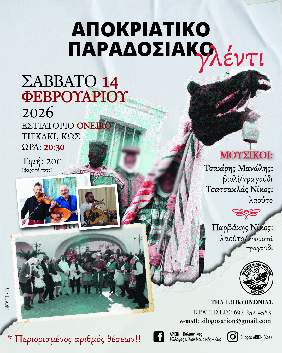 Άνοιξε το Τριώδιο και εμείς μετράμε αντίστροφα για το καθιερωμένο πλέον αποκριάτικο γλέντι μας!Όπως κάθε φορά κατά την διάρκεια του, εκτός των άλλων, θα παρουσιάσουμε αποκριάτικους χορούς, παιχνίδια, αρσίζικα (αθυρόστομα) τραγούδια με βάση πάντα αναφορές Κώων λαογράφων αλλά και νεότερες καταγραφές.Φυσικά θα συμμετέχει και η Κοκκάλα μας….Σας περιμένουμε!